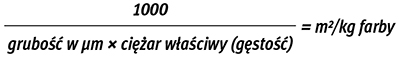 Metoda obliczeniowa wyznaczania teoretycznej wydajności farby w [m2/kg] w odniesieniu do grubości powłoki [μm] i ciężaru właściwego (gęstości) farby [g/cm3]