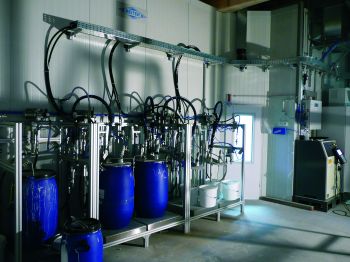 Stacja zasilania lakierami dla 4 kolorów i środka płuczącego.