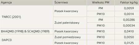 Tablica 6. Zapylenie niektórych ścierniw pyłem z 1 kg ścierniwa.