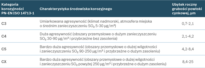 Tab. 1. Trwałość ogniowej powłoki cynkowej w różnych środowiskach korozyjnych [na podstawie 4]