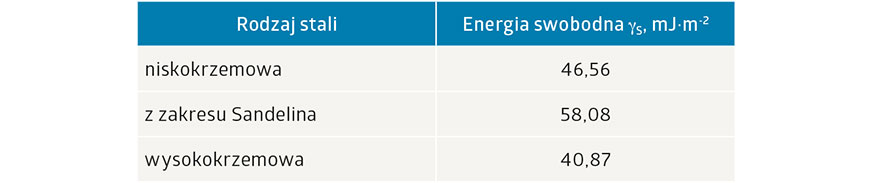 Tab. 1 Napięcie powierzchniowe powłok cynkowych [17]