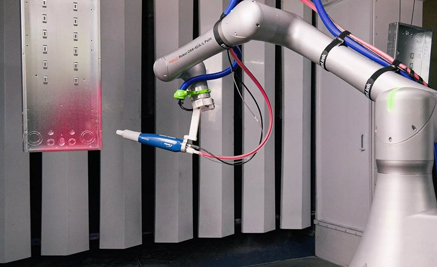 Robot oferuje udźwig 10 kg i zasięg 1418 mm, co – w połączeniu z unikalnym ruchem typu under-flip – pozwala na precyzyjne operowanie pistoletem lakierniczym nawet w trudno dostępnych przestrzeniach.