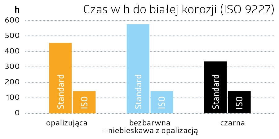 Rys. 4. Wymagana odporność korozyjna (do białej korozji) zgodnie z ISO 19598:2017-04 spasywowanych powłok cynk-nikiel w układzie zawieszkowym.