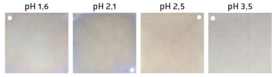 Rys. 13. Wpływ pH przy stałej temperaturze i czasie zanurzenia. W podanym przykładzie optymalna wartość pH=2,5.