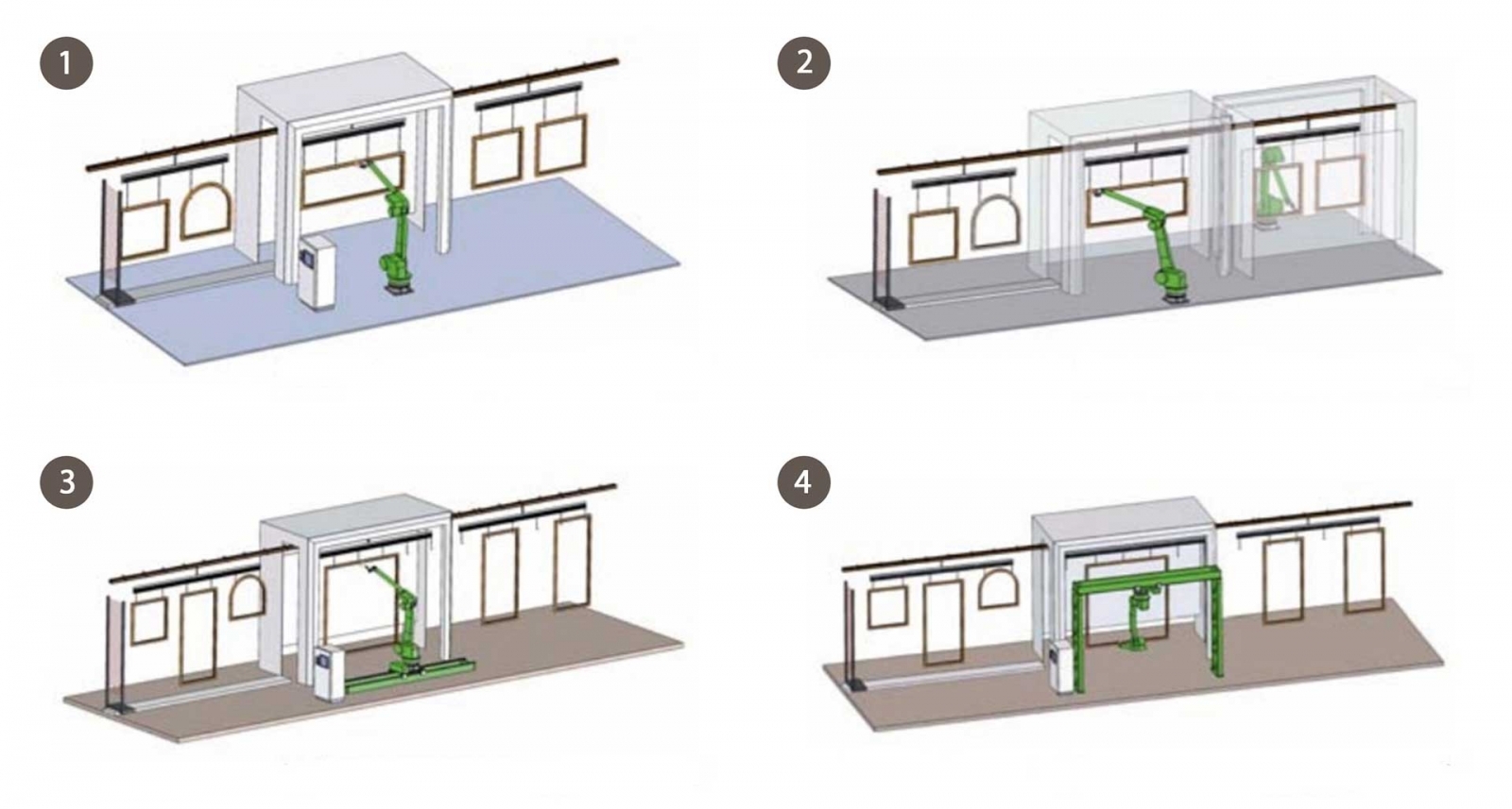 Na pierwszy rzut oka roboty lakiernicze stosowane do malowania i lakierowania drewnianych powierzchni przypominają typowe jednostki używane w innych sektorach przemysłu. W przeciwieństwie do robotów wykorzystywanych np. w przetwórstwie tworzyw sztucznych są to na ogół systemy przegubowe z pięcioma lub sześcioma stopniami swobody (osiami ruchu), choć niektóre, np. montowany na ścianie KJ314 firmy Kawasaki, dysponują dodatkowo siódmą osią, dzięki czemu osiągają imponujący zasięg ponad 3 metrów.