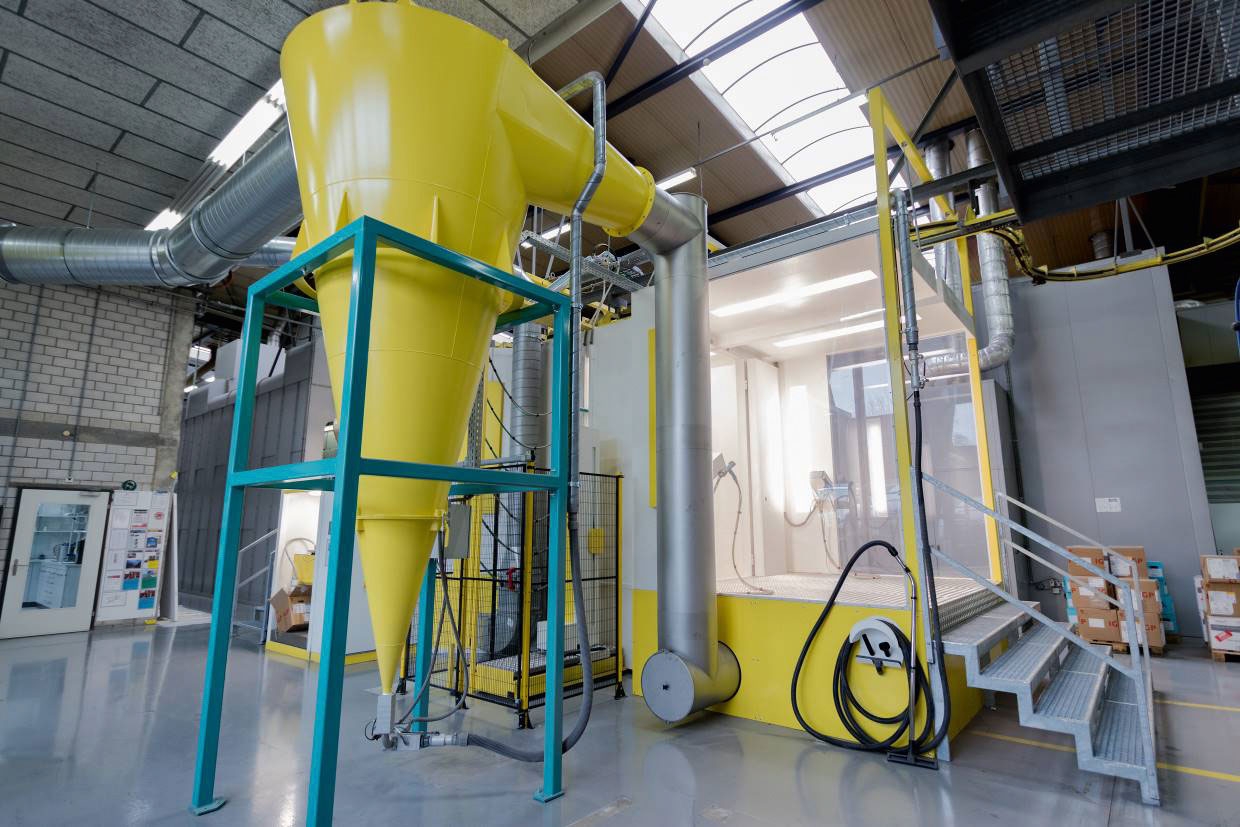 Kabina zawiera również wbudowaną kuchnię proszkową MS PK V24, co pozwala zaoszczędzić miejsce oraz zapewnić przyjazną użytkownikowi kontrolę. Jest ona wyposażona w ultradźwiękowe sito do recyklingu odzyskanego proszku, które jest niezwykle wydajne i bardzo szybkie w czyszczeniu. W przypadku cyklonu, firma MS zrezygnowała z systemu wyciąganych sit, co oznacza, iż na ma konieczności otwierania cyklonu przy zmianach koloru. Pozwala to zaoszczędzić znaczną ilość czasu podczas procesu zmiany koloru i nie powoduje kosztów okresowej konserwacji sit. – Cała konstrukcja systemu jest bardzo okazała, ale zajmuje niewielką powierzchnię dzięki kompaktowym rozmiarom – dodaje S. Gassler. – Urządzenia pozostawiają nam dużo miejsca do pracy zarówno w, jak i poza instalacją.