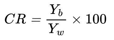 Yb — trójchromatyczna wartość składowej Y (jasność/luminancja) w przestrzeni barw CIE zmierzona dla próbki na czarnym podłożu,