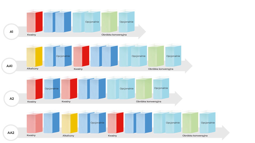 W naszej ofercie znajdziecie różnorodne, zaawansowane systemy powłok konwersyjnych, zaprojektowane z myślą o niezawodnej, wydajnej, ekonomicznej i przyjaznej dla środowiska obróbce wstępnej aluminium przed malowaniem proszkowym: