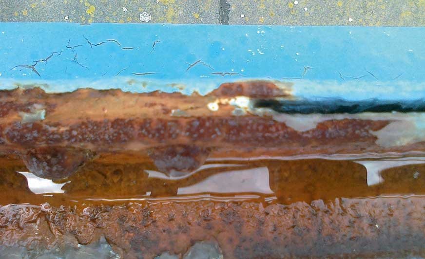 Szczeliny (fot. 2 i 3) to najczęściej miejsca blisko odległych od siebie lub stykających się ze sobą blach lub innych elementów. Szczeliny są bardzo trudne, a najczęściej niemożliwe do właściwego oczyszczenia i pomalowania.