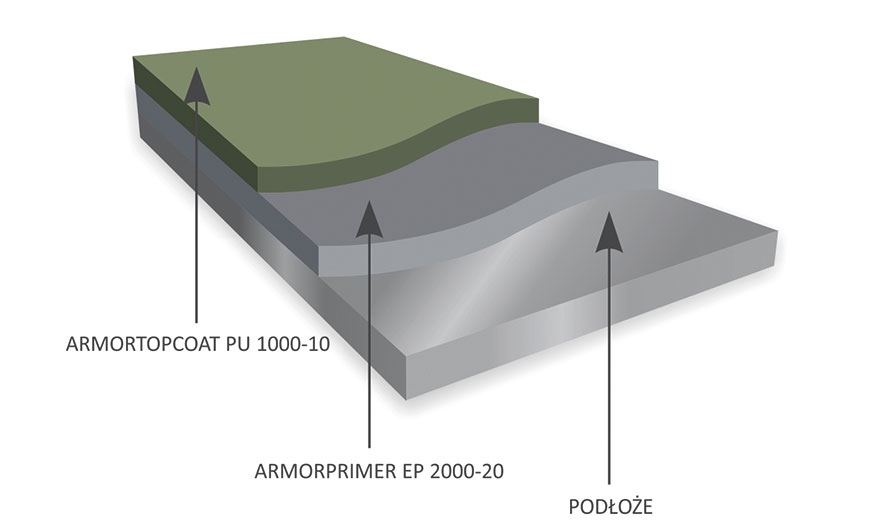 Dedykowany podkład epoksydowy Armorprimer EP 2000-20 zapewnia doskonałą odporność antykorozyjną. Charakteryzuje się wysoką wydajnością, nadaje się do różnych metod aplikacji, w tym wysokociśnieniowych i elektrostatycznych, zapewnia wyjątkową wytrzymałość mechaniczną. Opracowany system lakierniczy umożliwia aplikację podkładu w jednej warstwie, malowanie mokro w mokro (emalia na podkład), szybkie schnięcie emalii poliuretanowej oraz dobre krycie. Zaletą systemu jest również odporność na działanie promieniowania UV i zmienne warunki atmosferyczne.