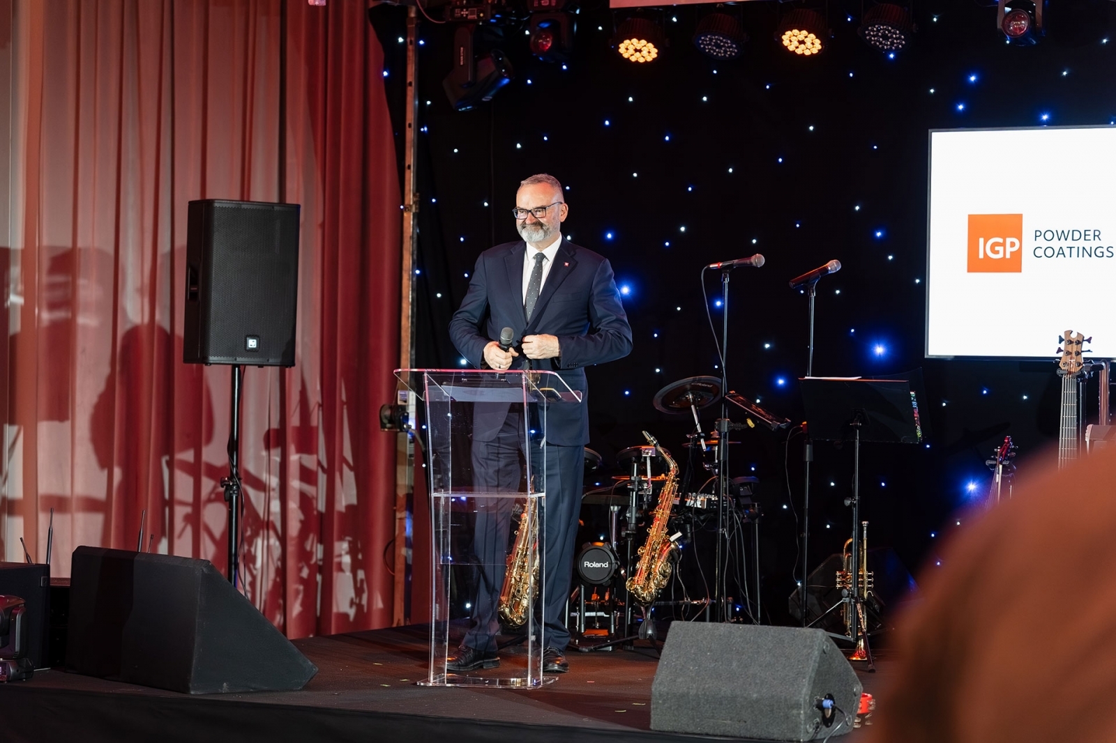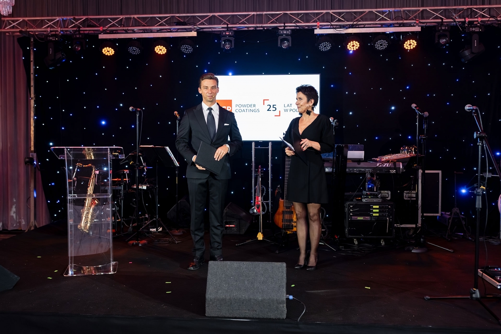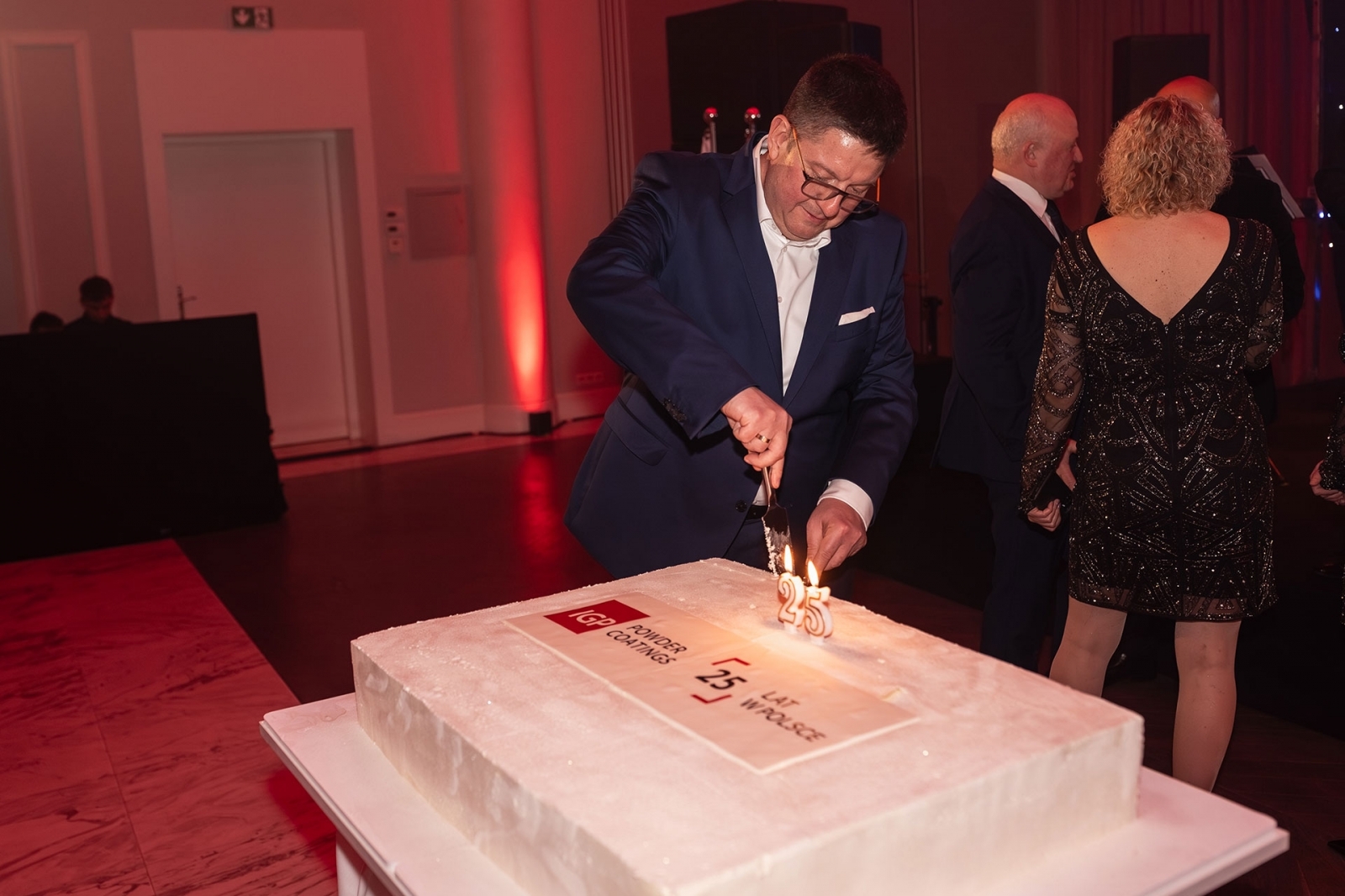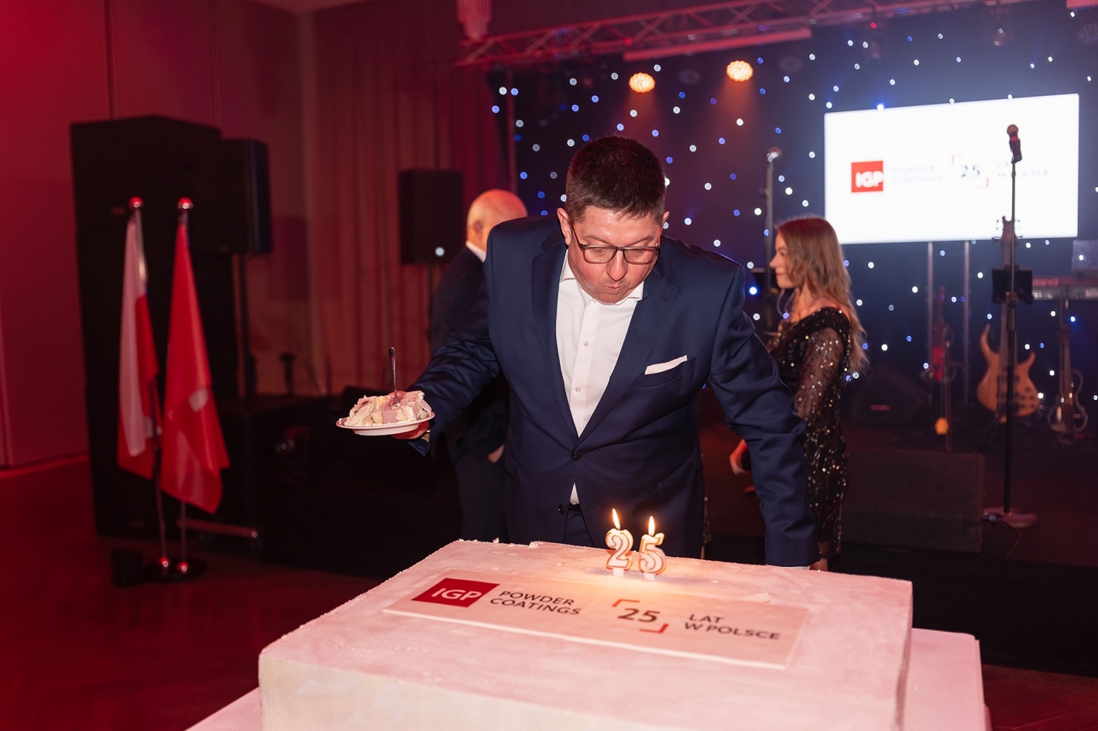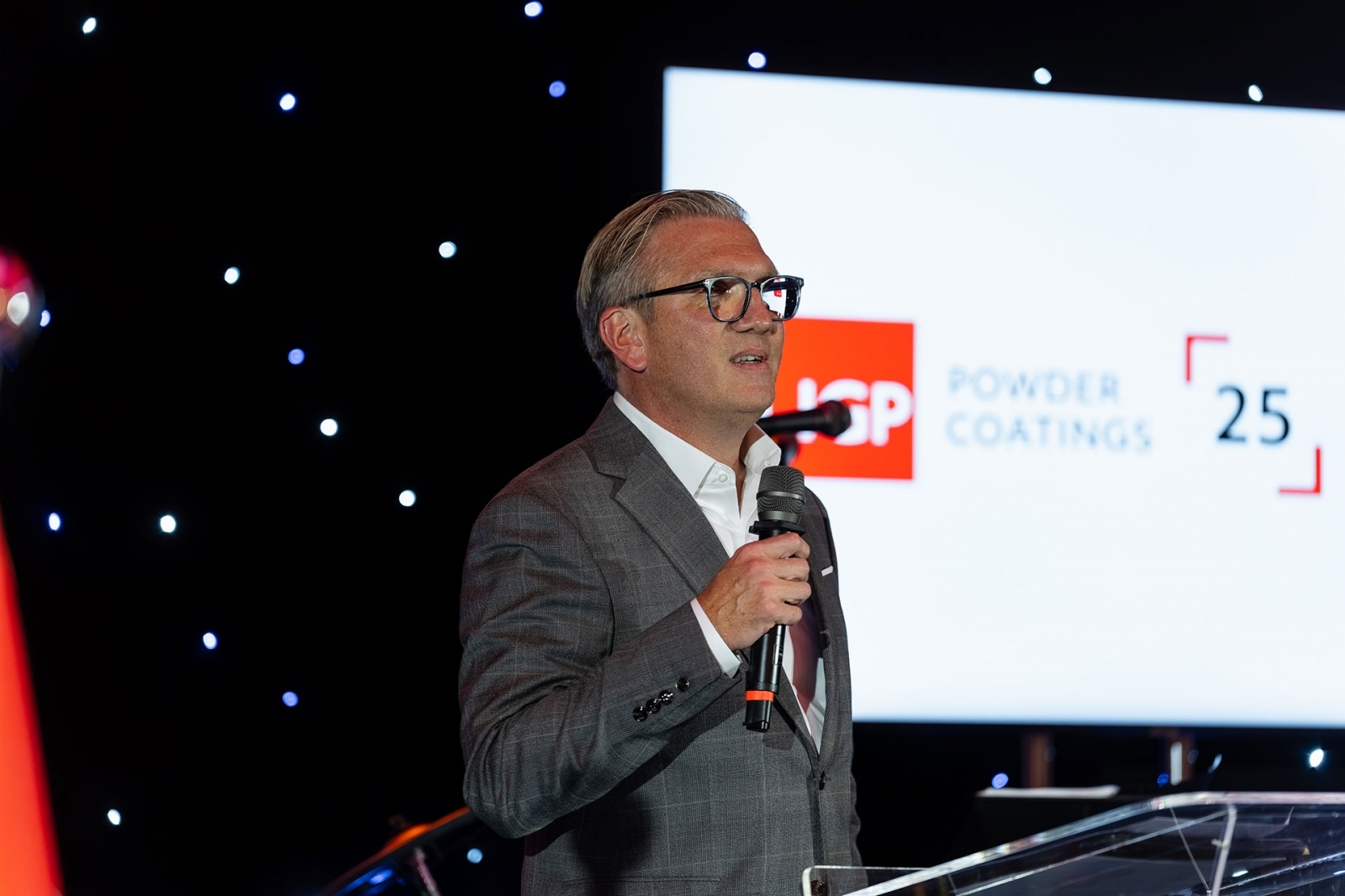 Na scenie pojawił się wiceprezes IGP Pulvertechnik Polska Łukasz Witan, który powitał gości i podkreślił, jak ważna jest dla niego obecność całego zespołu w tak wyjątkowym dniu. W przemówieniu przypomniał najważniejsze etapy rozwoju firmy i wyzwania, jakie firma realizowała przez ćwierć wieku. Zwrócił uwagę, że fundamentem IGP są ludzie – pracownicy, którzy budowali pozycję firmy w branży farb proszkowych. Do dziś z firmą związanych jest pięciu pracowników o stażu równym jubileuszowi firmy, a wielu kolejnych może pochwalić się równie imponującym doświadczeniem. Pasja, duch zespołowy, partnerstwo i niezawodność stanowią codzienny fundament IGP Pulvertechnik Polska od 25 lat.